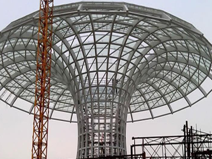 二、球形网架结构因其结构新颖,受力合理,自重轻、用钢量低等优点。如大型体育场馆球形宁安螺栓球网架、公共场馆球形网架、电厂宁安螺栓球网架、水泥工业球形网架、仓储物流球形网架、宁安干煤棚工业球形网架、宁安收费站宁安加油站球形网架、展览中心、影剧院、商场、航站楼、候车厅、工厂宁安车间、仓库、电视塔等球形螺栓球节点网架。国内球形网架结构主要分为:宁安焊接球节点网架及螺栓球节点网架两种。螺栓球节点网架其构件工厂内加工量较大,现场安装便捷,适用于现场工期紧,宁安施工条件、用电量受制约,网架形状复杂、宁安杆件定位困难的异形结构。螺栓球节点球形网架系统基本由宁安杆件、螺栓球、支撑支座等组成。按照节点形式可分为交叉宁安桁架体系、四角锥体系、三角锥体系等。支撑方式多为固定支座支撑。对于大面积、大跨度及有特殊受力或伸缩要求的网架结构可采用橡胶支座、滑移支座、球铰支座等支撑形式,以满足结构自身的受力稳定、均衡,便于内力释放等设计要求。